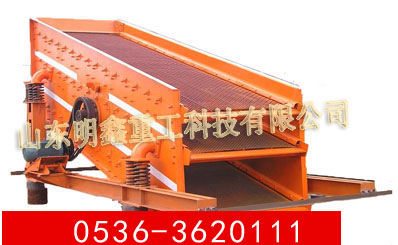 篩體依靠兩臺相同的振動電機做相反方向自同步旋轉,使整個篩機在減振彈簧的支承下做直線振動,物料從入料端落入篩箱后,迅速前進、松散透網,完成篩分。