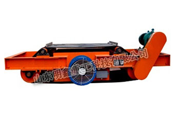 RCDC系列風冷自卸式電磁除鐵器,是在RCDA系列除鐵器的基礎上增加了驅(qū)動電機、滾筒、帶刮板的卸鐵膠帶等組成的卸鐵機構(gòu)。在工作過程中卸鐵機構(gòu)自動將卸鐵皮帶吸附的鐵磁性物質(zhì)卸到集鐵箱內(nèi),無需停電人工清理,實現(xiàn)了除鐵自動化。